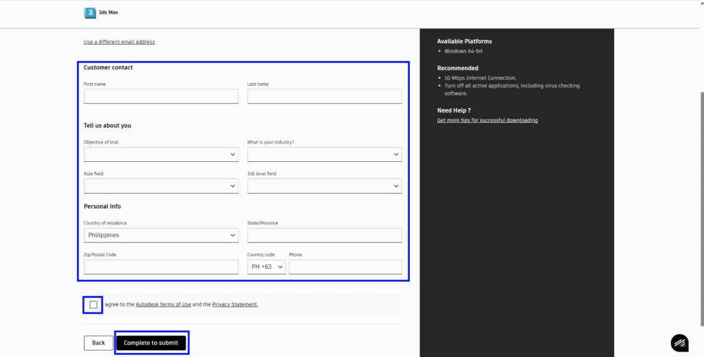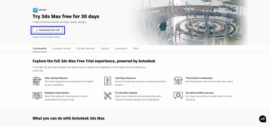 Any interested user can get a 30-day free trial of the latest version of 3ds Max from the Autodesk website. Here’s a step-by-step guide on how to freely access this software for a brief period of time: