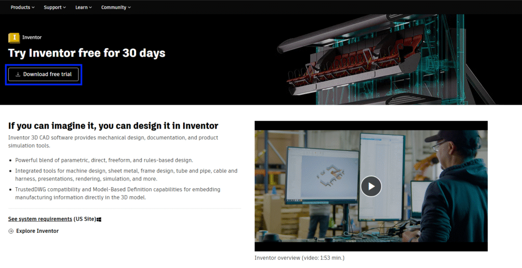 Any interested user can get a 30-day free trial of the latest version of Autodesk Inventor. Here’s a step-by-step guide on how to freely access this software for a brief period of time: